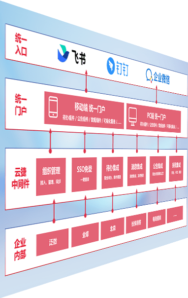 对协作平台提供支持服务,,,,支持企业应用与协作平台对接,,,,包含组织同步、、、、消息集成、、、、待办集成等。。。支持目前主流的协作平台:钉钉、、、、企微和飞书。。。