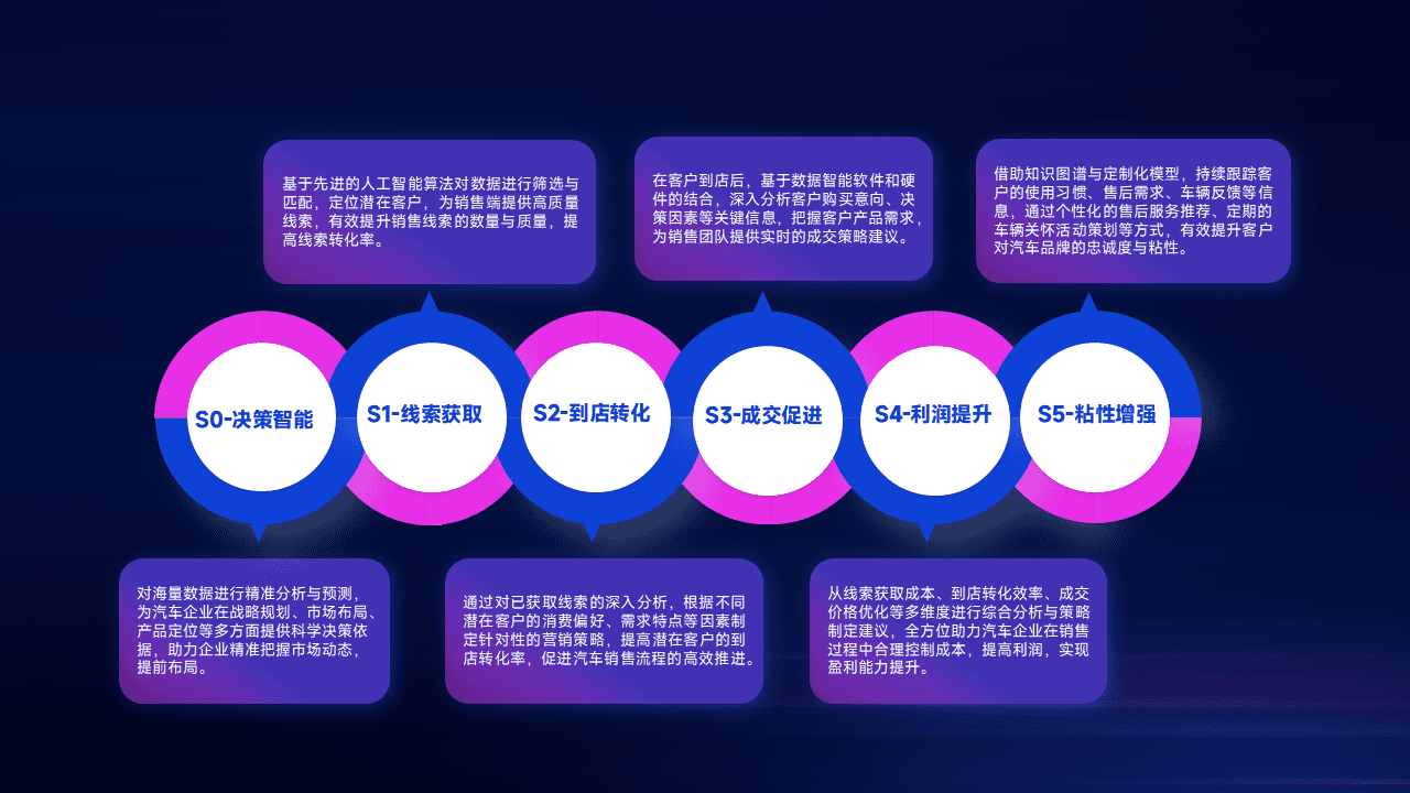 通过拓宽潜在客户来源、、、优化线索分配并提高到店转化率,,,以增强销售效率。。同时,,,,利用线索数据不断优化分析模型,,,,有效提升转化率,,,,扩大营销影响力。。